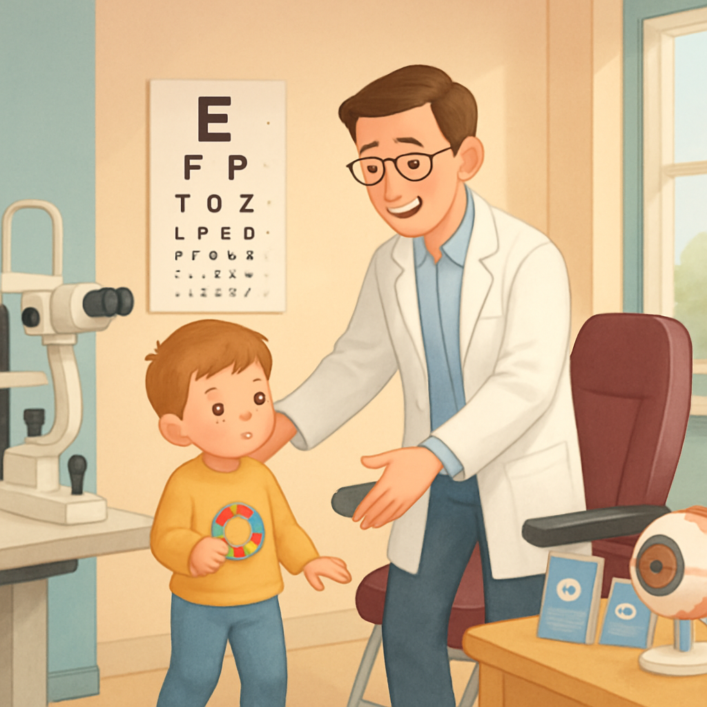 Children should have their first eye exam at 6 months of age. A second eye exam is important at age 3. Every child should have an eye exam before the start of school and every 1-2 years thereafter.